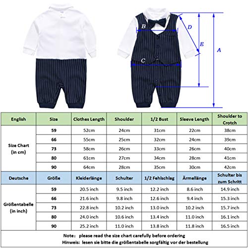 Fairy Baby, completo da neonato, vestitino elegante e formale, abito con maniche lunghe Navy Blue Stripe 9-12 Mesi