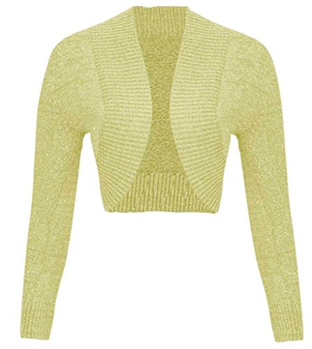 FAIRY TRENDZ Donne ritagliate in lurex bolero manica lunga scrollata di spalle da donna abbigliamento da festa lavorato a maglia plus size sera top, Giallo, 48-50