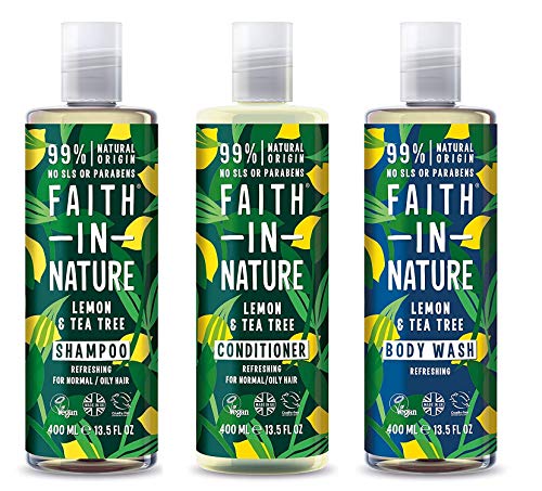 Faith In Nature Lemon and Tea Tree Shampoo, Conditioner and Shower Gel Trio Pack