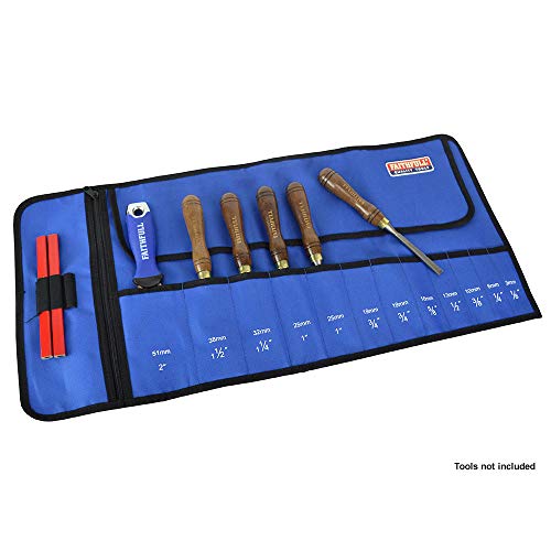 Faithfull FAICR12 - Rotolo di scalpelli con 12 tasche con scomparto con cerniera, blu, dimensioni approssimative: 32 x 68 cm
