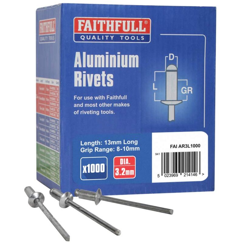 Faithfull - Rivetti lunghi in alluminio, 3 mm, confezione da 1.000