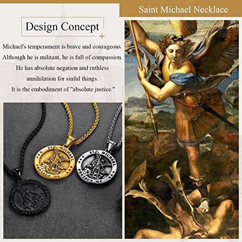 FaithHeart San Michele Santo Medaglia Collana San Micheal in Acciaio Inossidabile/Oro Placcato/Nero con Catena 55+5 cm Gioielli Religiosi Amuleto per Uomo Donna (Confezione Regalo)