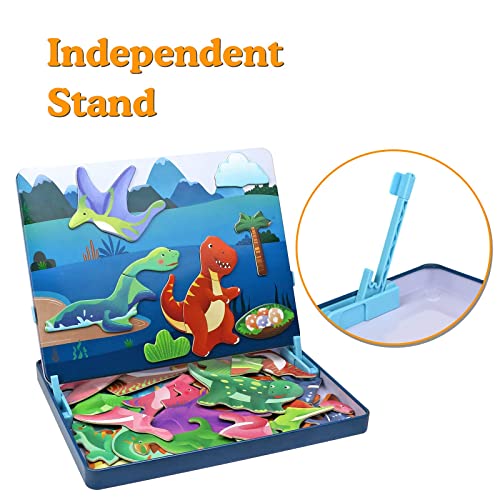 Fajiabao Giochi Puzzle Bambini Dinosauri Giocattolo-Puzzle Dinosauri Magnetico Legno con Tavolo da Disegno in Puzzle Box Giochi Montessori Educativi Regalo Bambino Bambina Bambini 2 3 4 5 Anni