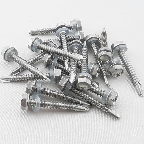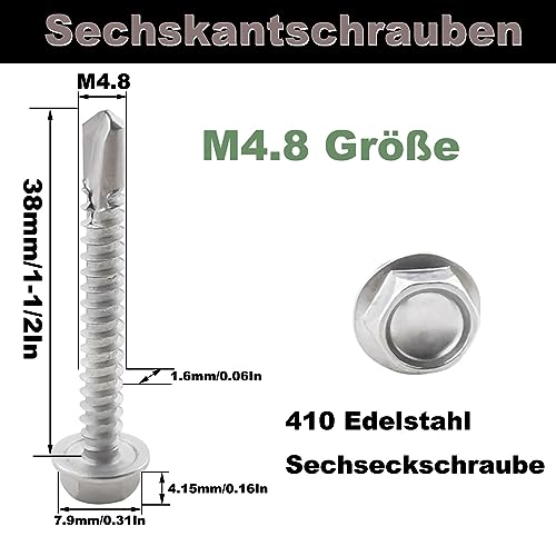 Fajoeda 4,8 x 38 mm, viti autofilettanti esagonali, 40 pezzi, in acciaio inox 410, viti autofilettanti con rondelle in plastica, viti autofilettanti ad alta resistenza (disponibili da 16 mm a 38 mm)