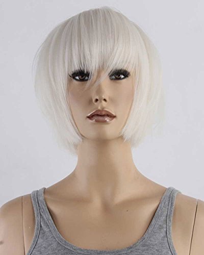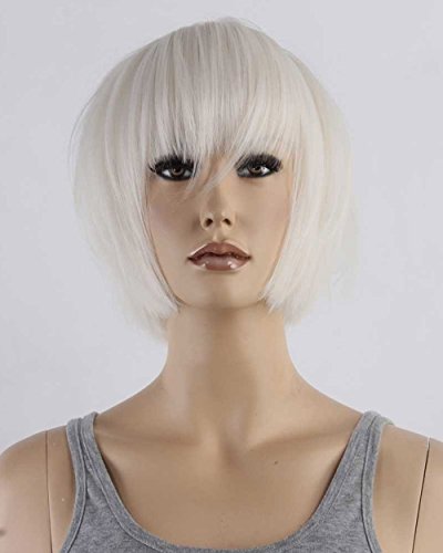 Falamka Parrucca Bob da donna corta dritta bianca elegante