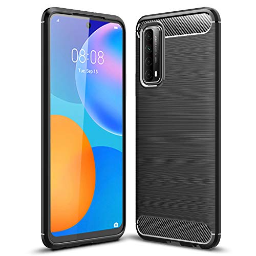 FaLiAng Fibra Carbonio Cover per Huawei P Smart 2021, Morbido Silicone Custodia Antiurto Custodia Anti-Impronta Protettiva Case (Nero)