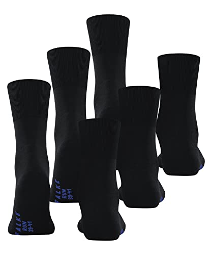 FALKE Run 3-Pack cotone tinta unita confezione di 3 paia, Calzini Unisex - Adulto, Nero (Black 3000), 39-41