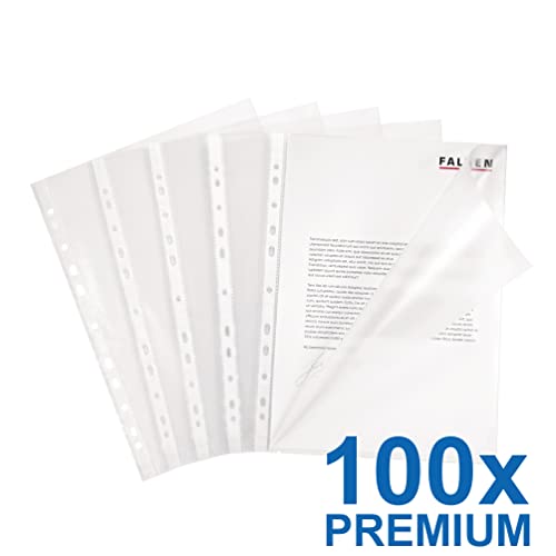Falken - Buste trasparenti perforate Premium - zigrinato, aperto lateralmente (100 pezzi) A4 transparent genarbt