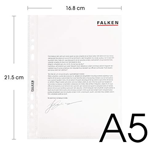 Falken - Buste trasparenti perforate standard DIN A5 - zigrinato, 100 pezzi