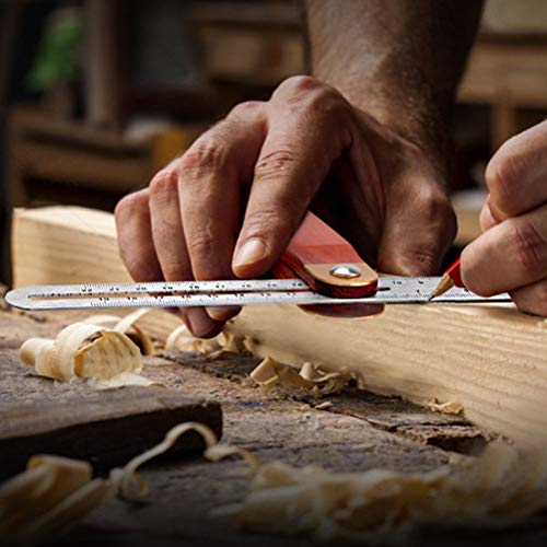 Falsa Squadra da Falegname Regolabile Multifunzionale - Squadra Falsa Scorrevole Metrico/Imperiale, Squadrette da Carpentieri Squadra Combinata - Acciaio, 20CM, Impugnatura in Legno Solida de QLOUNI