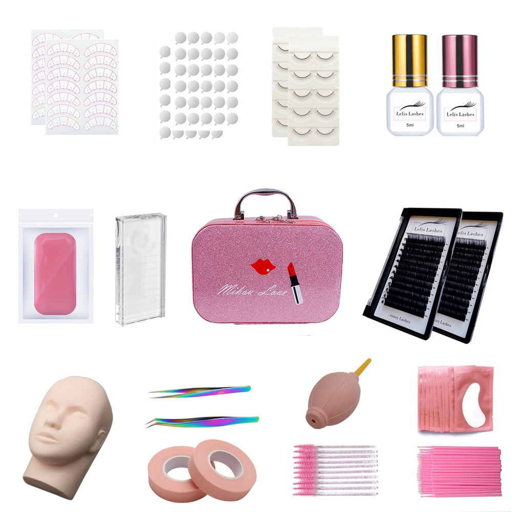 False Eyelash Extension Training Kit Practice Model Mannequin Head Eye Pads Tweezers Glue Ring Brush Grafting Eyelash Tools Kit