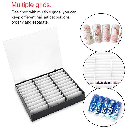 Multifunzione: non è solo per la finitura, la conservazione e la presentazione di unghie finte, ma anche per la conservazione di una varietà di decorazioni per nail art, come pietre preziose, perle, strass e altro. Progettato con più griglie, è possibile tenere diverse decorazioni per nail art ordinate e separate.