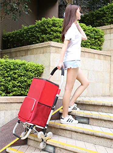 Falytemow Carrello pieghevole scalatore per scale 3 ruote 40 pollici maniglia altezza carrello pratico Oxford Trolley borsa per generi alimentari (rosso)