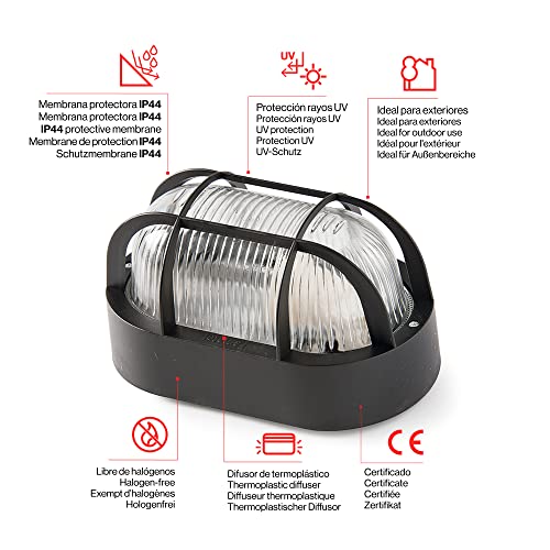FAMATEL 4409 G E27-Lampada Ovale, 60 W, Nero