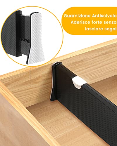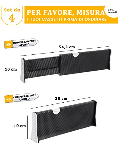 ✅【DIVISORI PER CASSETTI REGOLABILI】Questo set comprende 4 divisori rettangolari per cassetti in plastica robusta. I divisori per cassetti sono adatti a tutti i cassetti con una lunghezza compresa tra 38 e 54,2 cm e un'altezza superiore a 10 cm. Prima dell'acquisto, accertarsi che i cassetti rientrino in questo intervallo.