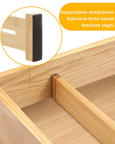 ✅【Buon design e materiali di qualità】Il sistema di divisori è dotato di cuscinetti in gomma su entrambe le estremità per proteggere i cassetti e i divisori stessi. Tutti i divisori sono realizzati in bambù di alta qualità (grado A), il quale non solo è resistente, ma anche più sano.