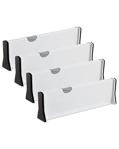 Famhap Separatori per Cassetti in Plastica Regolabili (Set da 4), Organizzatore Cassetti Espandibili da 27,8-43,5cm, Divisori per Cassetti Cucina, Organizer Cassetti Scrivania, Ufficio e Bagno