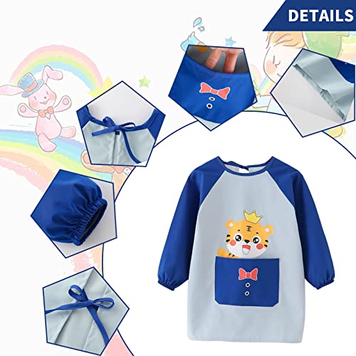 FAMIDIQGO Grembiuli da pittura per bambini, con tasca, piccola tigre con corona, impermeabile e antimacchia, leggero e traspirante, applicare pittura artistica a scuola, cucina (blu)