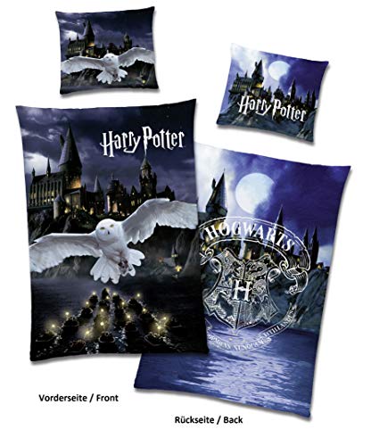 Familando Set copripiumino reversibile Harry Potter 135 x 200 cm 80 x 80 cm · Biancheria da letto per bambini in 100% cotone · Gufo Hedwig · Hogwarts · Dimensioni tedesche · Biancheria da letto estiva