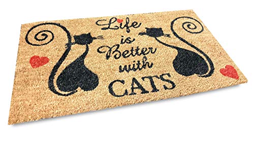 Tex family Tappeto ZERBINO Welcome Gatto Nero + Rete Antiscivolo Plus