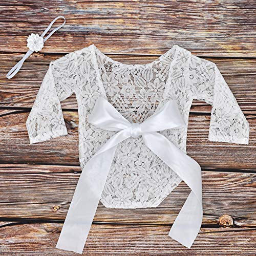 FAMKIT Infant Photo Shoot Vestiti 2 pz/set Neonato Della Ragazza Del Merletto Pagliaccetto & Fascia Fotografia Puntelli Abiti per Neonato, bianco, M