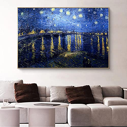 Famoso dipinto Van Gogh Cielo stellato sul Rodano Poster e stampa Wall Art Picture Dipinti su tela Living Room Decor 50x90cm Senza cornice