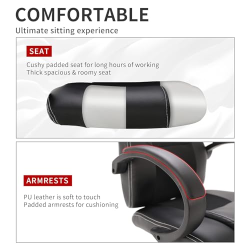FAMOYI Set di 2 Sedia Gaming Ergonomica Poltrona Gaming in Pelle PU Nero Sedia Ufficio Girevole ad Altezza Regolabile con Funzione Altalena per Adulto e Adolescenti, 150 KG Capacità di Carico