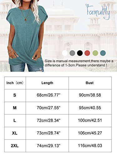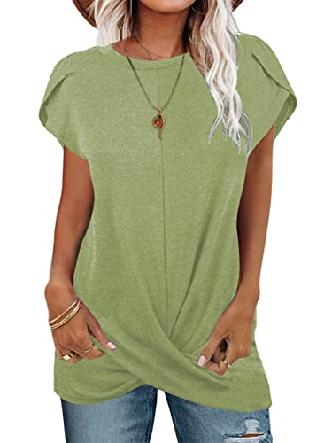 Famulily Casual Front Twist Girocollo Top Donna Estate Breve Petalo Manica T Shirt Sciolto Tinta Unita Tunica Camicetta Top Shirt, Verde, XL