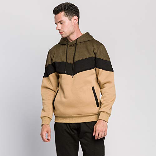 Famulily Felpa con cappuccio da uomo a maniche lunghe, con stampa patchwork, con cappuccio, stile casual e sportivo, con tasca, Verde militare, XL