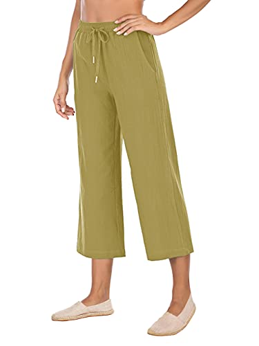 Famulily Pantaloni corti estivi da donna in cotone e lino con tasche, Giallo, XL