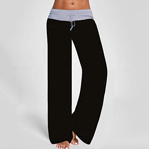 Famulily Pantaloni da salotto lunghi a gamba larga con coulisse a righe elasticizzate comode da donna, Nero scuro., S