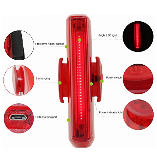 Fanale posteriore bici,Evary Super Bright Light USB ricaricabile a LED posteriore della bicicletta, impermeabile Luce di sicurezza della bicicletta, 30 LED, 6 modalità di luce rossa per escursioni in bicicletta, caschi o zaini