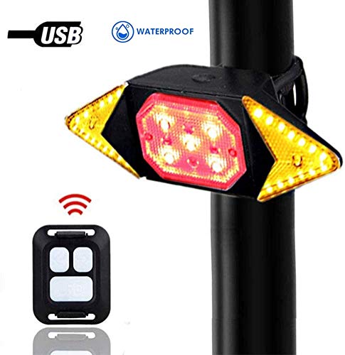 Fanale posteriore per bici con indicatori di direzione, fanale posteriore per bicicletta impermeabile senza fili con telecomando, luci posteriori per freni a bici ultra luminose ricaricabili USB