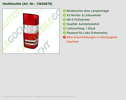 Fanale posteriore senza portalampada, adatto per sinistro (lato guidatore), per circolazione a destra e sinistra, con marchio di controllo e, qualità: Auto parte accessori, contenuto della confezione: 1 pezzi