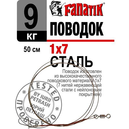 FANATIK Cavetto terminale treccia Filo ACCIAIO INOSSIDABILE 1x7 15-90 cm 6-18kg con Girella e Moschettone Pesca Fishing Wire Trace Leader with Swivels and Duo-Lock Snap, 1pcs (20 cm, 6)