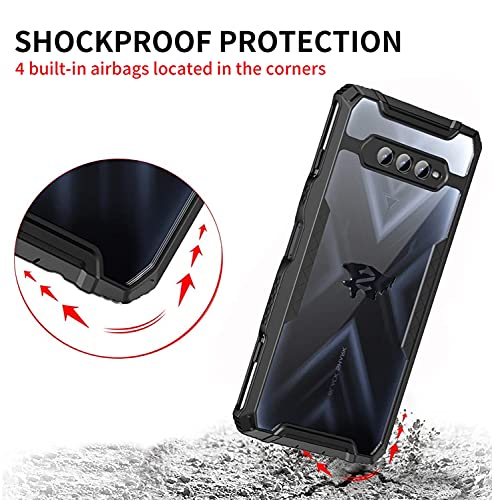 Fanbiya for Xiaomi Custodia Black Shark 4, Custodia Slim Fit in TPU Black Shark 4 Pro Trasparente Compatibile con Custodia Protettiva Antiurto con Polsino Incassato con Vetro Temperato (Black)