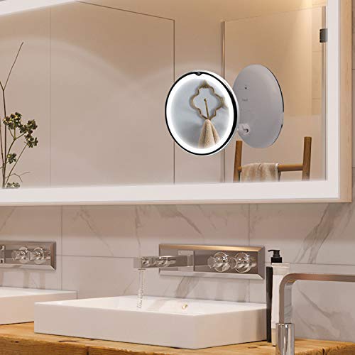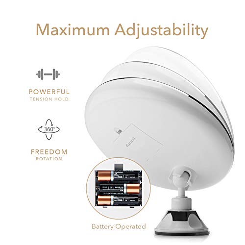 Fancii Specchio Ingranditore illuminato 7x per Trucco, con LED Circolari a Luce Naturale, Bloccaggio a Ventosa, Senza Fili - Specchio Cosmetico da Viaggio