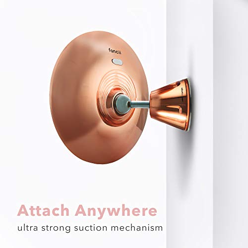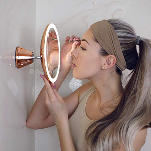 Fancii Specchio Ingranditore 10x Ricaricabile con 3 Impostazioni di Luce a LED e Ventosa Potente - 20 cm Specchio per Il Trucco del Bagno Dimmerabile Illuminato, Lana (Oro Rosa)