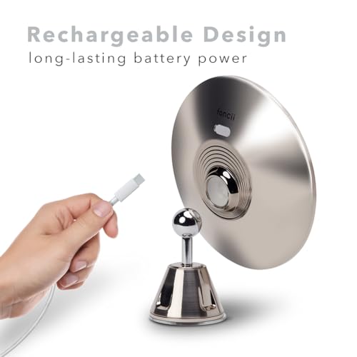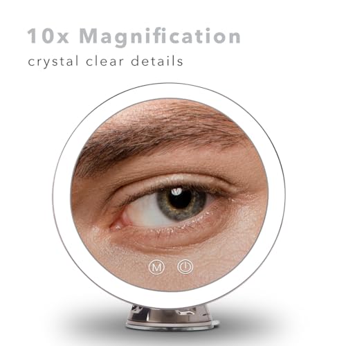 Fancii Specchio Ingranditore 10x Ricaricabile con 3 Impostazioni di Luce a LED e Ventosa Potente - 20 cm Specchio per Il Trucco del Bagno Dimmerabile Illuminato, Lana (Cromato)