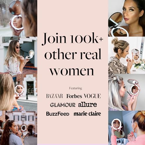 Fancii Specchio Ingranditore Tascabile per Trucco con Luce a LED Naturale, 1x e 10X - 127mm Specchio Portatile da Borsetta Illuminato, Oro Rosa (Lumi)