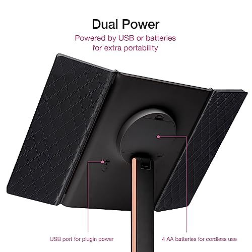 Pronto per viaggiare - Lo specchio misura 32 x 35 cm ed è fissato a una base rimovibile che funge da cassetto per riporre trucchi, gioielli e molto altro! Lo specchio a tre pannelli si ripiega facilmente per la massima portabilità.
