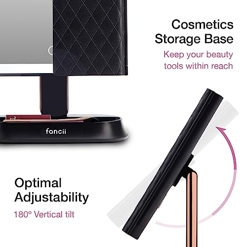 Fancii Specchio per Trucco con Luce LED, Specchio Ingranditore 1X 5X 7X - Luci LED Naturali a Intensità Regolabile e Touchscreen, Specchio Cosmetico Illuminato da Tavolo, Sora (Nero)