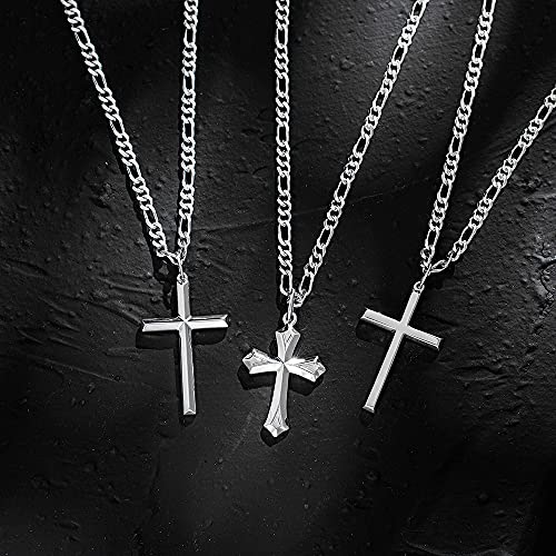 FANCIME Collana Croce Uomo in Argento Sterling 925 Placcato Oro Giallo Ciondolo Croce con Catena Figaro Curb, Hip-Hop Gioielli Regalo per Lui Ragazzi Bambini - Lunghezza Catena: 60 cm