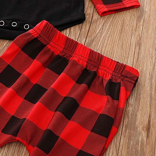FANCYINN Abiti natalizi per bambine e maschietti Pagliaccetto scozzese a maniche lunghe Pagliaccetto Babbo Natale + pantaloni + cappello 3 pezzi di vestiti 3-6 Mesi