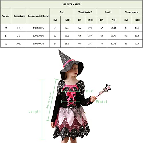 FANCYINN Costume da Strega Ragazze con Cappello da Strega Costume da Strega Rosa Mardi Gras Costume di Halloween Vestito da Strega per Bambini Ragazze 4-6T