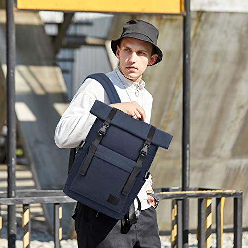 FANDARE Antifurto Zaino Zainetto Scuola Roll Top backpack Espandibile Zaino per 15.6 pollice PC Portatile da Uomo Donna Borsa Universitaria Impermeabile Daypacks per Viaggio Lavoro Scuola Blu