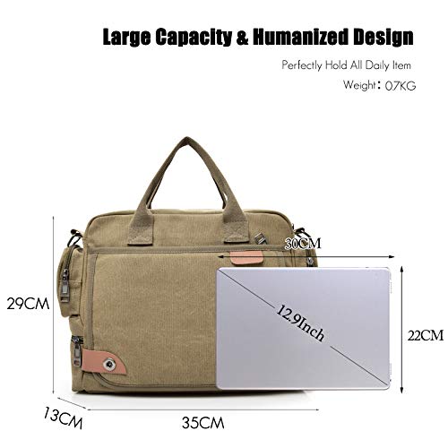 FANDARE Borsa a Tracolla Portatile Borse a spalla per 12.9 Pollici PC Ventiquattrore Uomo Borse Messenger di tela Borse Sacchetto Crossbody Bag per viaggio lavoro scuola università Borse Cachi