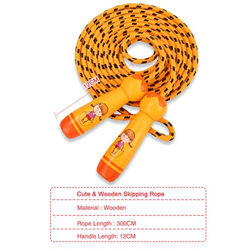 ❤ Impugnatura Antiscivolo & Confortevole - Impugnatura appositamente personalizzata per bambini, antiscivolo, solida, leggera, comoda, resistente, facile da afferrare e trasportare. La corda per saltare da palestra è realizzata in legno di alta qualità, superficie con simpatico disegno ragazzo / ragazza / animale e vernice colorata atossica a base d'acqua, molto elegante e pratica.