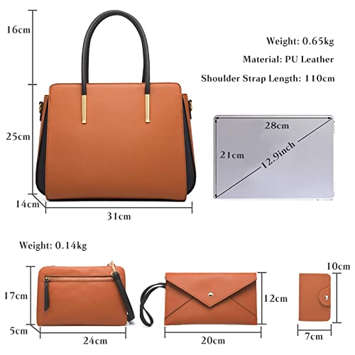 FANDARE Elegante Borsa da Donna Borsa a Mano Borsa a tracolla Spalla 4 pezzi Set Borse Tote da donna Pochette Portafoglio Borsa Messenger per Shopping Viaggio Partito Sacchetto Borsetta Nero