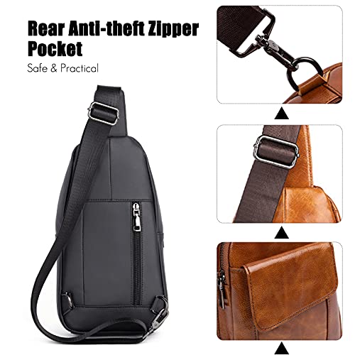 FANDARE Monospalla Uomo Zaino Monospalla Tracolla Donna Pelle Borse piccole a tracolla Borsa a Spalla per Scuola Outdoor Sportiva Ciclismo Viaggio Hiking Camping Crossbody Daypacks Nero A